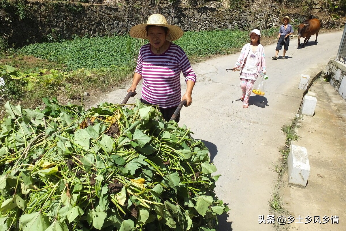 但是,当地下的红薯收获后,地上的茎叶也完成使命快速老化变成了老红薯藤,纤维化严重,既不能当蔬菜食用,也不能做家畜的饲料,不但失去了原有的价值,而且种植多了后,红薯藤的处理就有一些麻烦。父母每年挖了红薯,都要把这些老红薯藤运到一里外的荒山里倒掉。