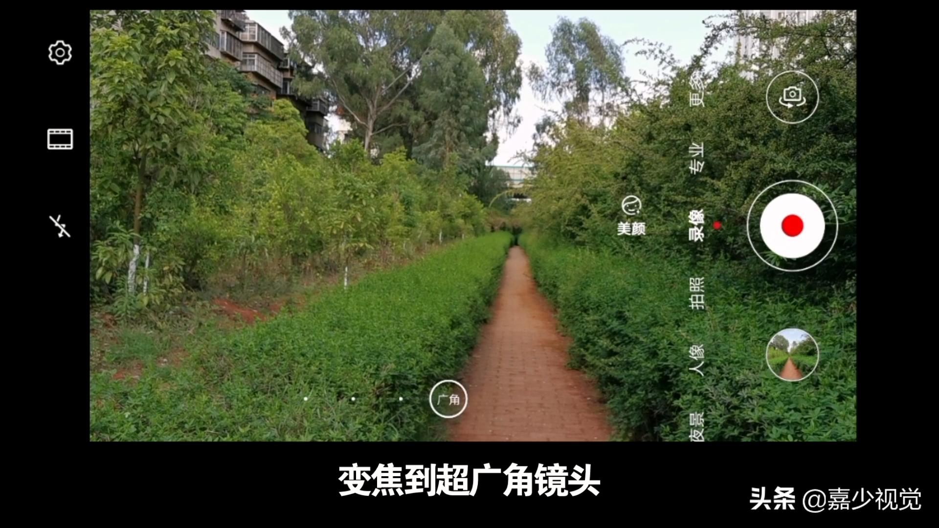 设置好后,退出DJI Mimo,打开手机原相机录像模式,变焦到超广角镜头,