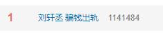 一时间使得话题 #刘轩丞 骗钱出轨# 冲上文娱热搜第一。