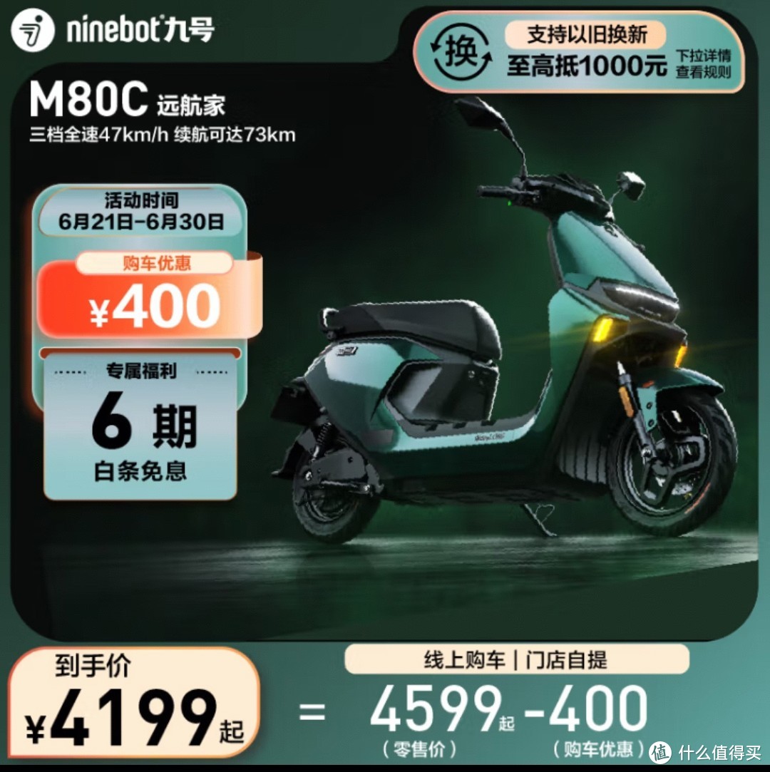 Ninebot 九号 Q系列 Q80C 电动轻便摩托车 JH800DQT-73799元价格给力实时价格检测有效去购买活动