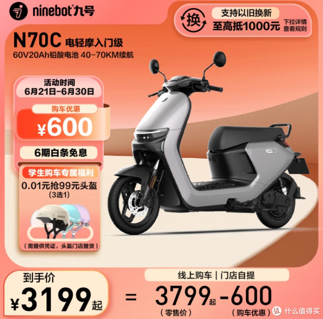 作为九号入门级的轻电摩,N70C的性价比还是非常不错的,它的外观、续航、基础功能配置都很全面。毕竟在这个价位下电机功率800W,后轮鼓刹这样的配置还是可以接受的。我觉得如果你的预算有限,又需要一台大车,那么这一款确实性价比很高: