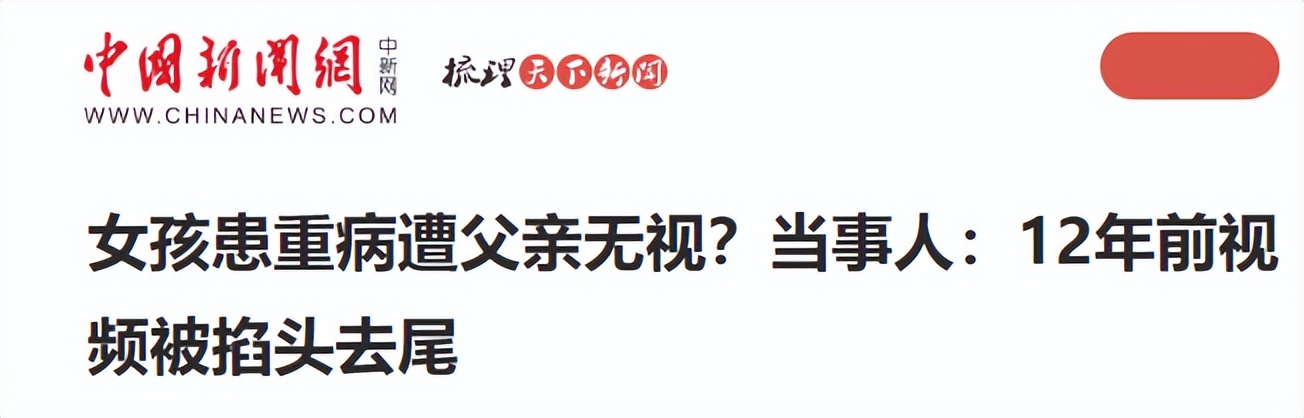 参考资料:中国新闻网:女孩患重病遭父亲无视?当事人:12年前视频被掐头去尾