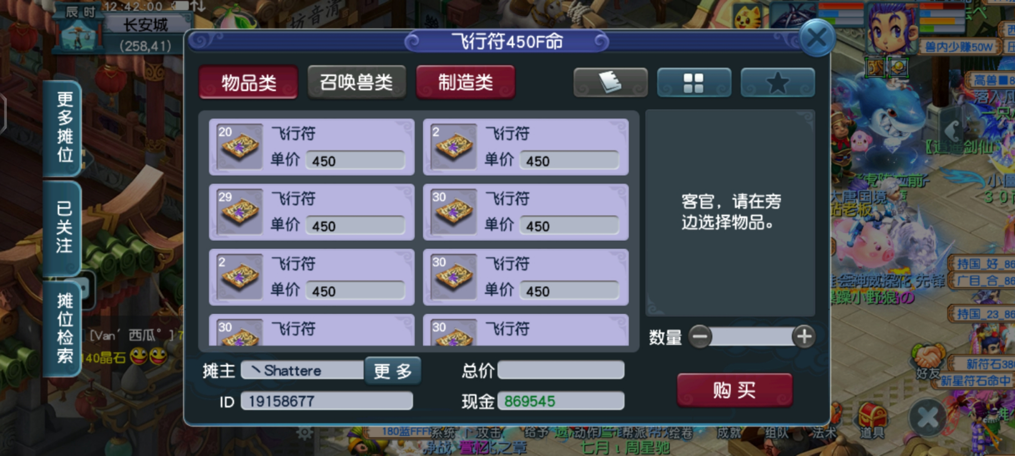 大家是否发现,在长安驿站罗道人边上,有许多玩家摆摊卖飞行符,比系统罗道人卖的还要低一点,飞行符是每个玩家的必备道具,他能快速到达各大城市,消耗的非常快。