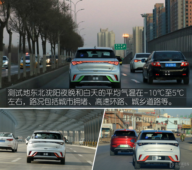 我们所在测试城市是东北沈阳,夜晚和白天的平均气温在-10℃至5℃左右,需要说明的是本次主要针对一二三线城市的用车气候情况,并非极寒测试。测试车辆比亚迪海豚405km续航版本,车辆会在ECO经济模式、动力回收最大、自动空调24°情况下驾驶,而测试的路况包括城市拥堵、高速环路、城乡道路等。