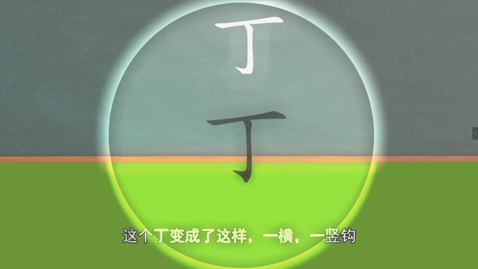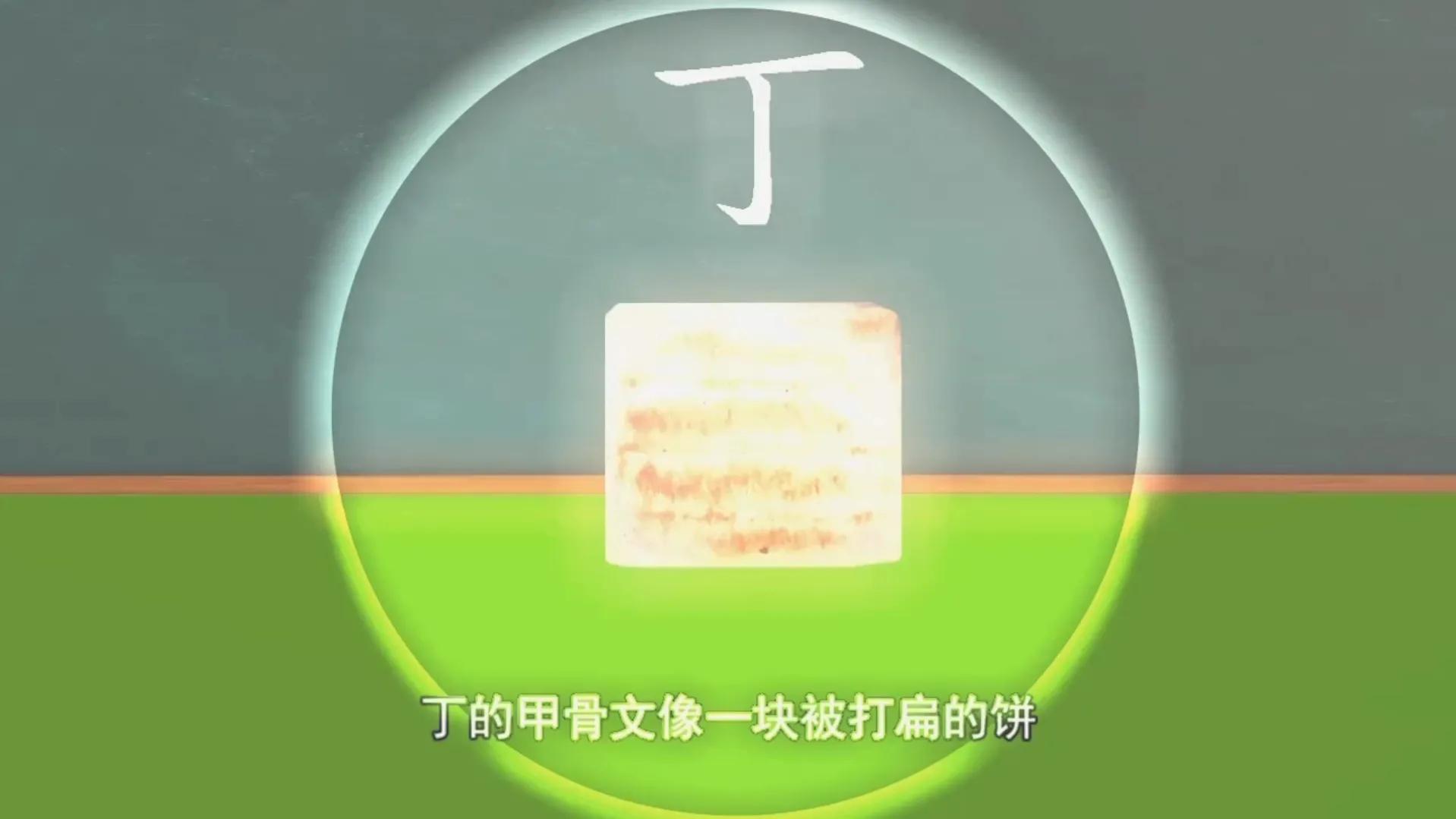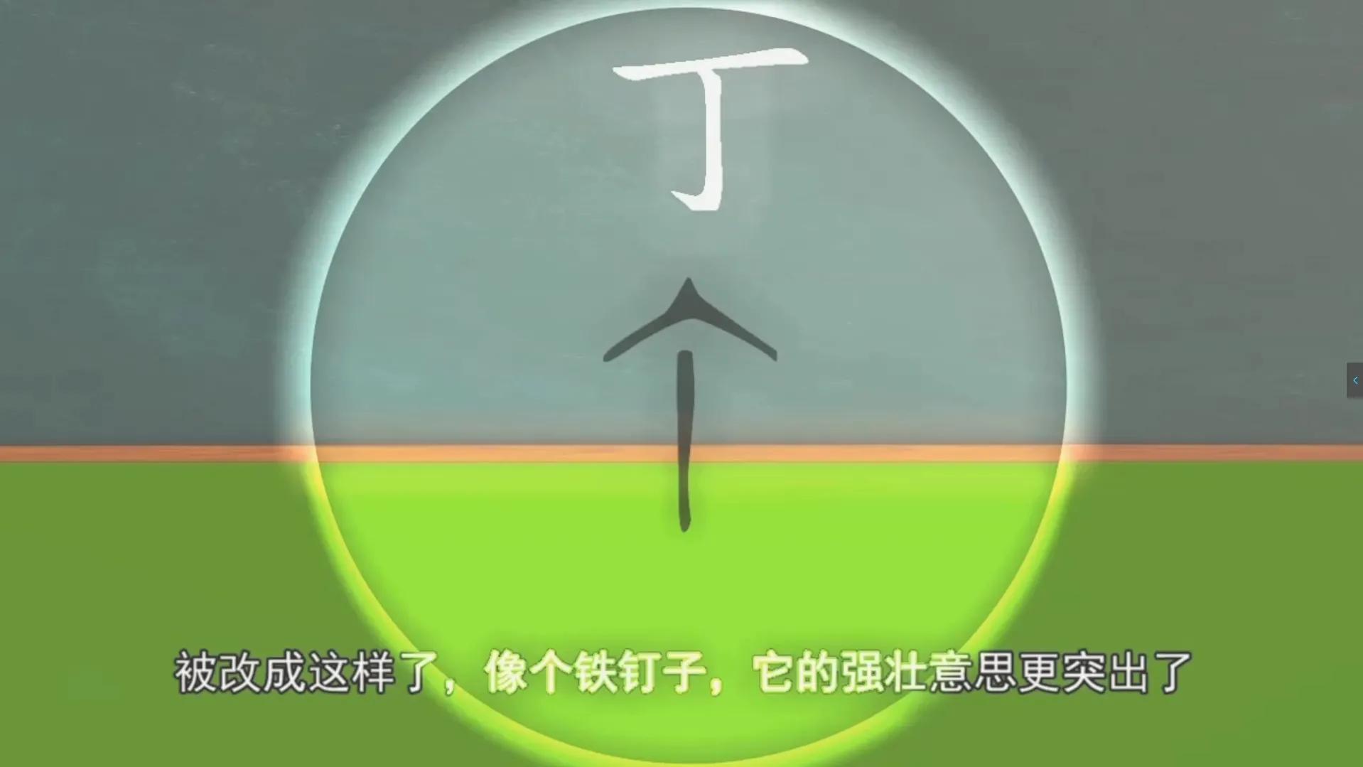 比如这个丁,一横可以代表铁钉的头部,一竖可以当作是钉子的身体,一钩可以想象成铁钉子钉入墙里变弯了。