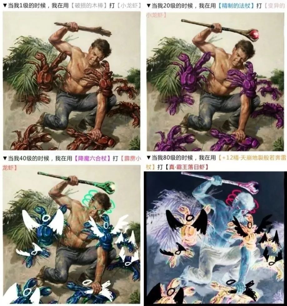 毕竟,有的肉鸽重点在于提供数值爽感。随机选项看似不同,但大多是数值加成的BUFF,最终造成了「第一关打小龙虾,第二关打变异小龙虾」的雷同感——伤害数字从500变成5万,运气更好则是5亿,但实操玩法差异不大,缺失了大脑学习的成长快感。