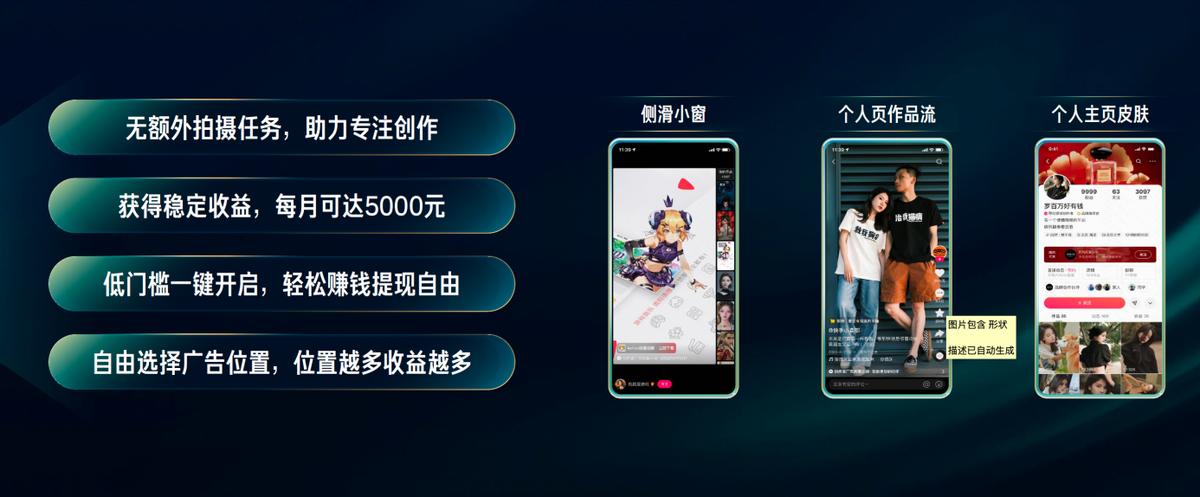在本次光合大会上,孔慧也带来了磁力万合产品的最新进展。在产品层面,磁力万合产品覆盖的场景逐步增多,创作者可自行选择侧滑小窗、个人页作品流、个人主页皮肤等广告展示位置。变现层面,产品自3月上线至今,已经助力超过10万创作者变现,其中有30%以上的创作者是在快手平台首次获得收入。