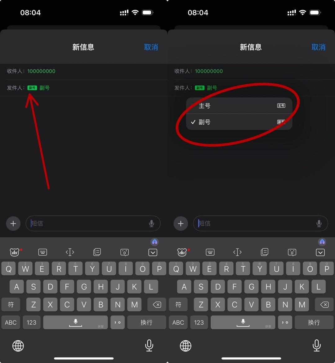 除了拨打电话外,苹果手机还允许您在发送短信时选择主副卡。在短信界面,输入联系人和信息后,您会看到选择作为发信息号码的选项。在这里,您可以自主选择使用主卡或副卡发送短信。