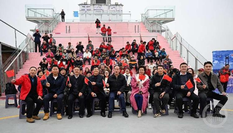 授牌仪式后,渝中区摄影家协会50余名摄影家在重庆世贸131观景大平台上为解放碑街道大井巷社区的居民拍摄全家福。