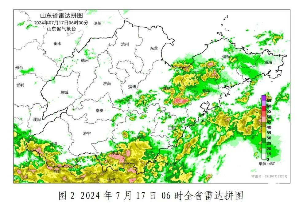 山东省气象台于7月17日09时分发布暴雨黄色预警:受副高边缘暖湿气流和冷空气共同影响,15日下午至16日夜间,鲁中、鲁南和半岛的部分地区出现大到暴雨局部大暴雨,鲁西北地区出现小到中雨局部大雨。
