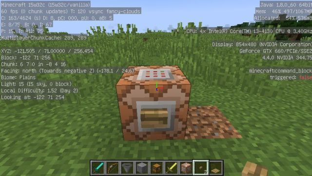 然后我们需要了解这个世界的坐标,按下F3,你的界面就会变成下图,其中红色的部分就是坐标了。我们一般取下一行的整数来进行传送。