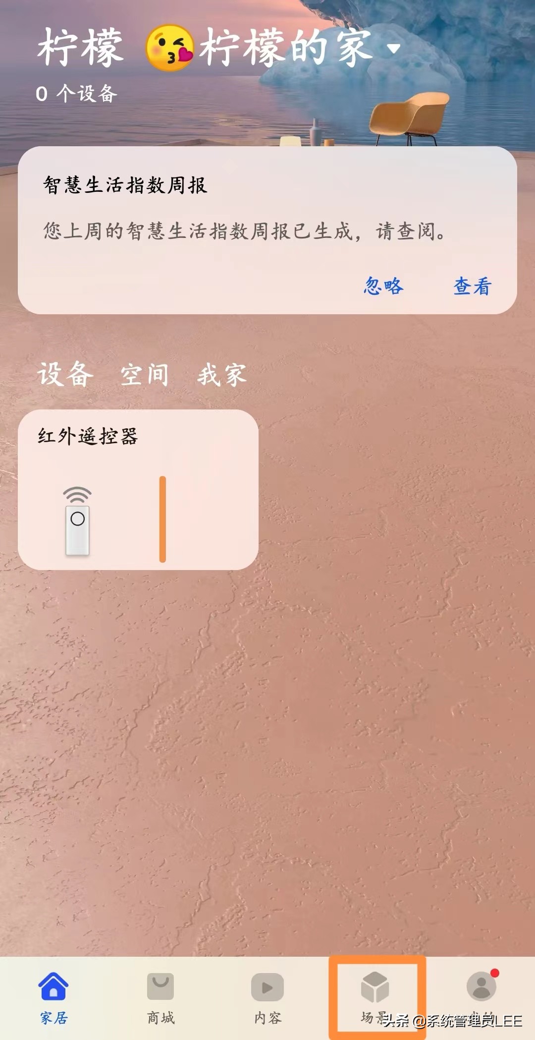 1、首先打开华为手机"智慧生活APP",点击页面下方的“场景”。