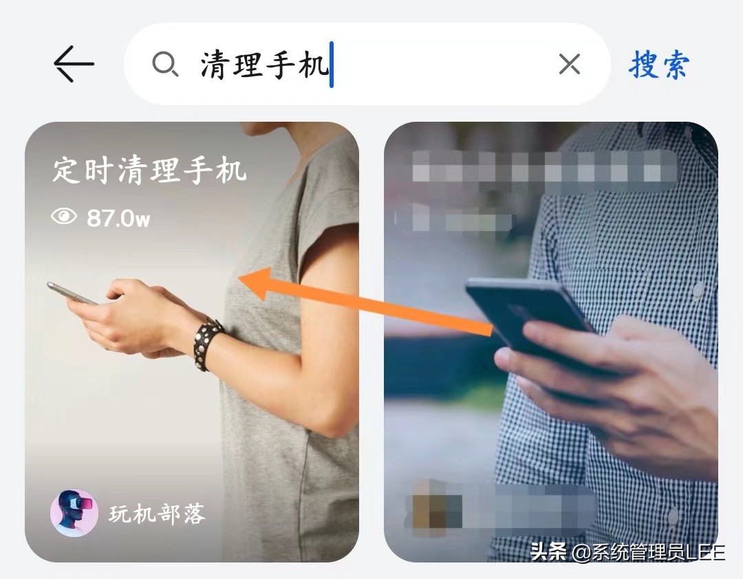 2、在最上面的搜索框里面搜索“清理手机”。