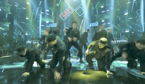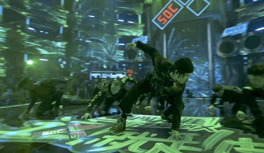 而王嘉尔自己的战队大秀,天马行空的创意也是无以言表。开场这撩人的摸发开启了虚拟世界的大门,当嘉尔带上帽子,满屏的科幻风扑面而来,滴滴滴,战斗歼灭模式开启!从大框架到细碎小动作,每个beat都精准踩住,踩点太舒服!简直是治好强迫症系列!