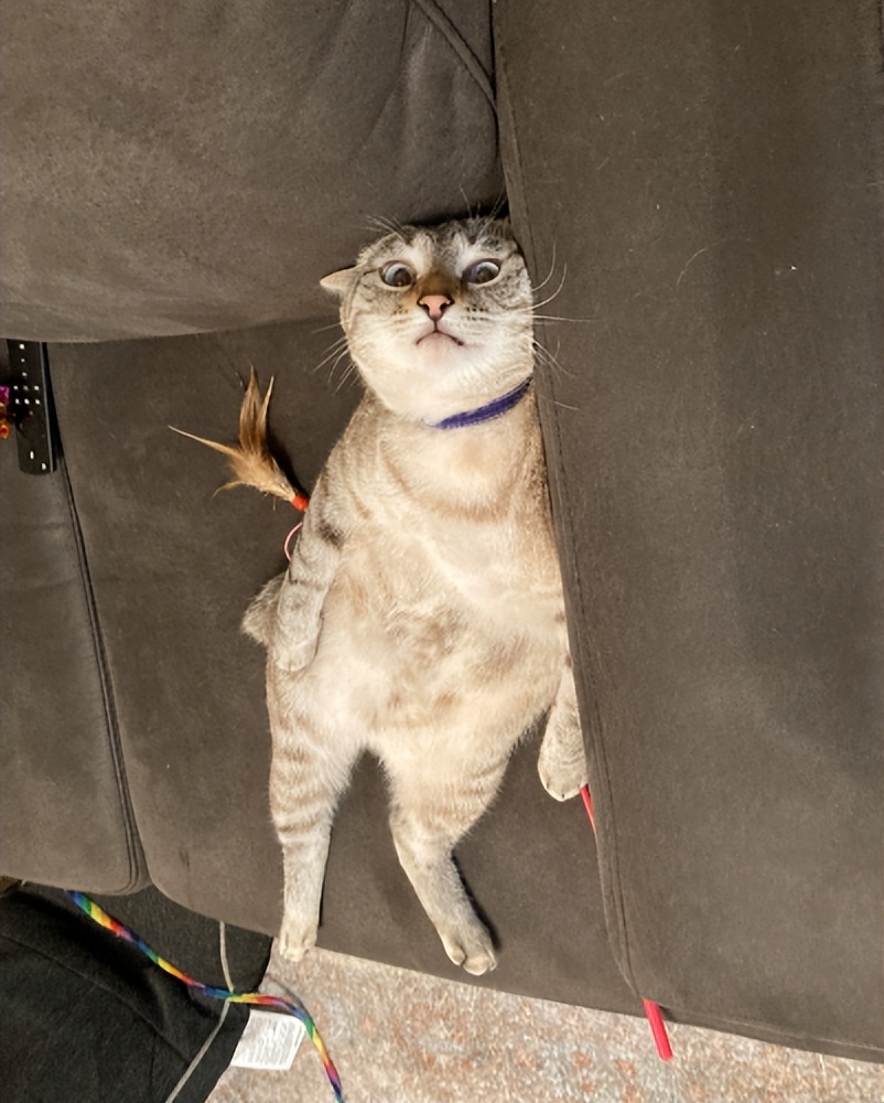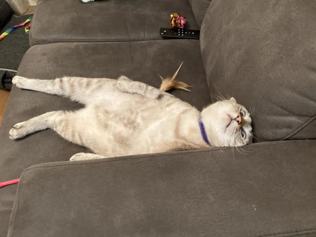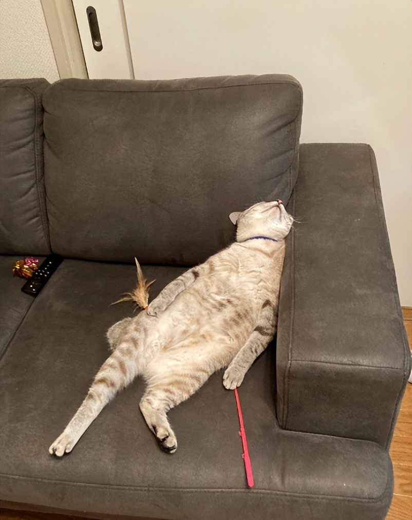 猫咪玩到一半,突然跑到沙发上瘫睡,主人上前一看,差点没被吓死