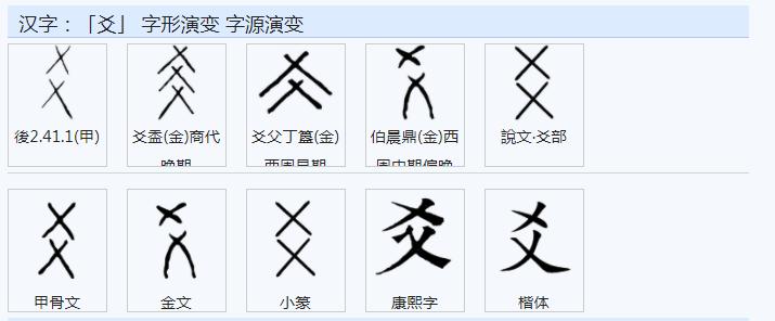 《说文解字》:“爻,交也。象《易》六爻头交也。”。