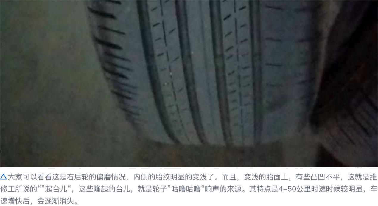 该问题除了导致内侧异常磨损之外,还会伴随着“咕噜咕噜”的胎噪。