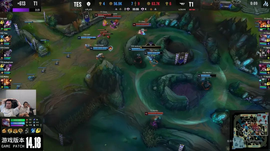 这场比赛的第三局,T1辅助选手Keria选出了派克,并且斩获了当局MVP。回顾其这局比赛的发挥,诸多玩家用“游龙”来形容,在多个位置带节奏来帮助队伍获取优势。比如对局33分钟左右,在中路队友Faker阵亡的情况下,还打算在TES五人后方寻找机会。CSBOY主播马西西感叹:“这哥们好6啊”。