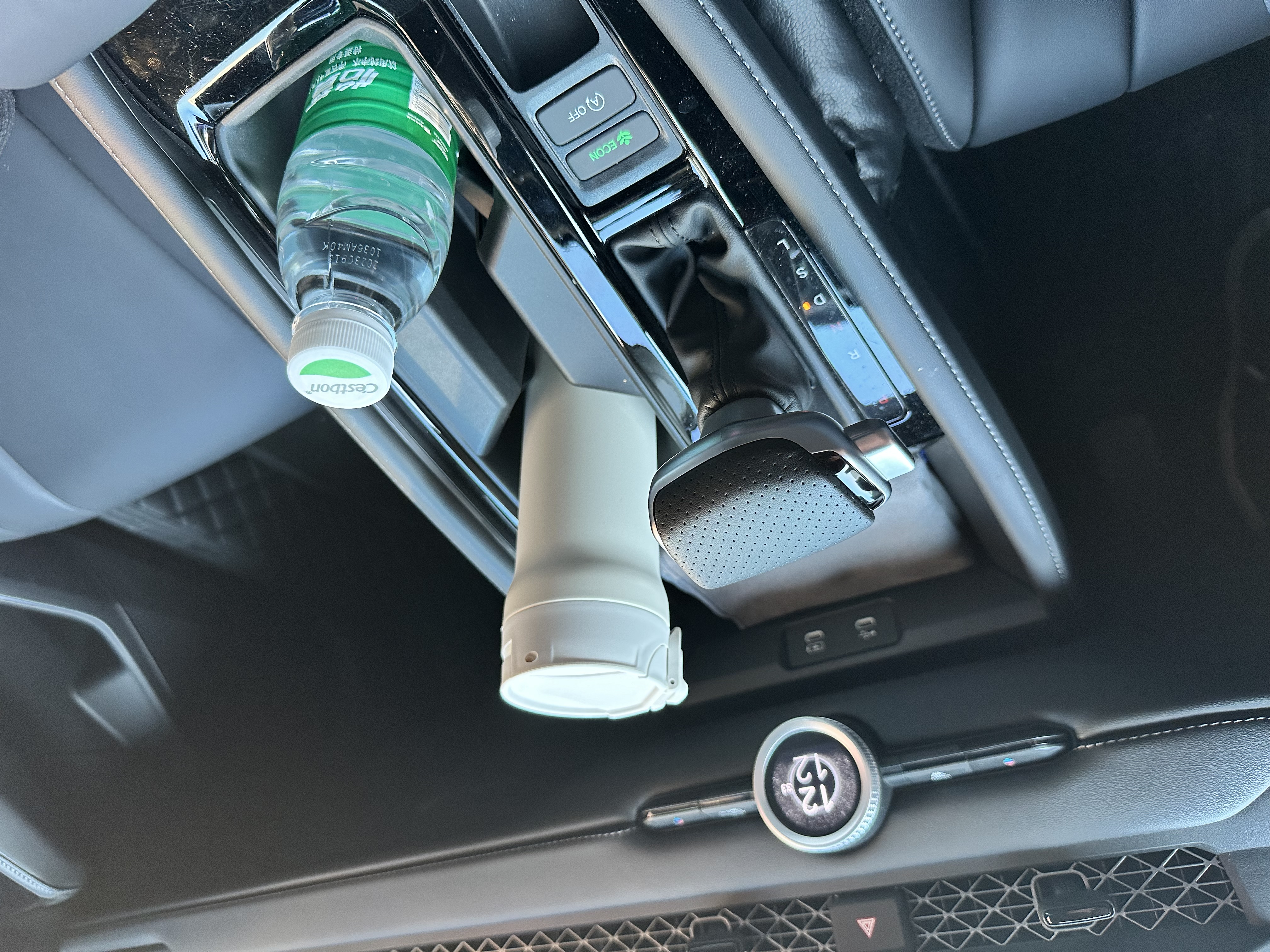 改后体验:没有选择水晶挡把,而是换了个皮革质的平面挡把,换挡按钮在侧方,大拇指按压换挡握感提升不少;而且行驶过程中把右手搭放在挡把上也很舒服,胳膊肘放在中央扶手箱上,手掌放在挡把上,整个小臂刚好是可以水平的,整个手臂轻松不少,也有地方放。