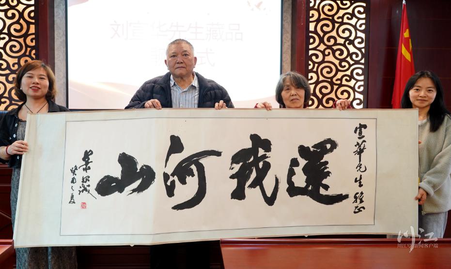 刘宣华向泸州市博物馆无偿捐赠萧尔诚书法作品“还我河山”。泸州日报记者 许世智 摄