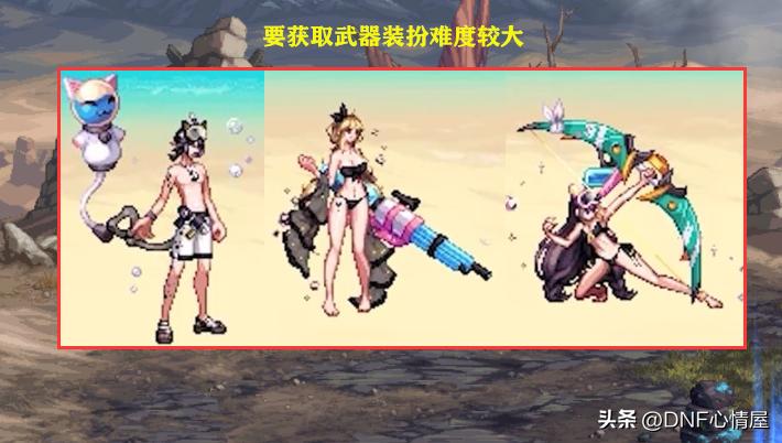 明明夏日套武器装扮,可以进礼包,一起困难给玩家,但看到外观设计的好看,就需要玩家凭借“抽”的方式获得,还设定千分之五的概率,不愧是DNF!不过说句实话,若非暖暖玩家,对武器装扮这个东西,并不是很在意,就没有必要去买,毕竟千分之五的概率,注定武器装扮价格,拍卖行会超级贵。