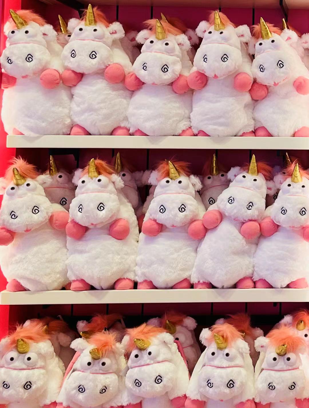 毛毛独角兽系列的设计灵感源于《神偷奶爸》中小女孩艾格尼丝最喜欢的独角兽,这一形象打造的毛绒玩具、背包、头饰和帽子受到诸多女生青睐,其中,毛绒玩具、背包是两大畅销单品,值得放入购物清单。