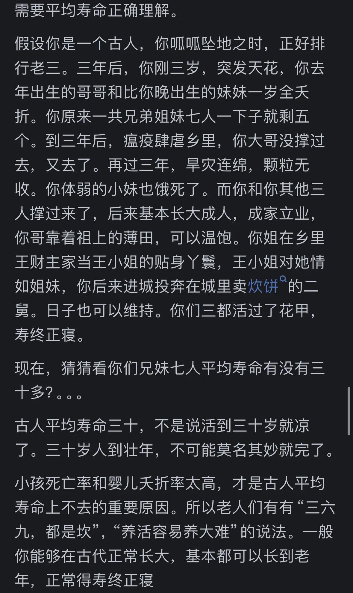 古人的平均寿命30岁那主要是婴儿和儿童死亡率高,真的长大了,其实活到50,60很多的。
