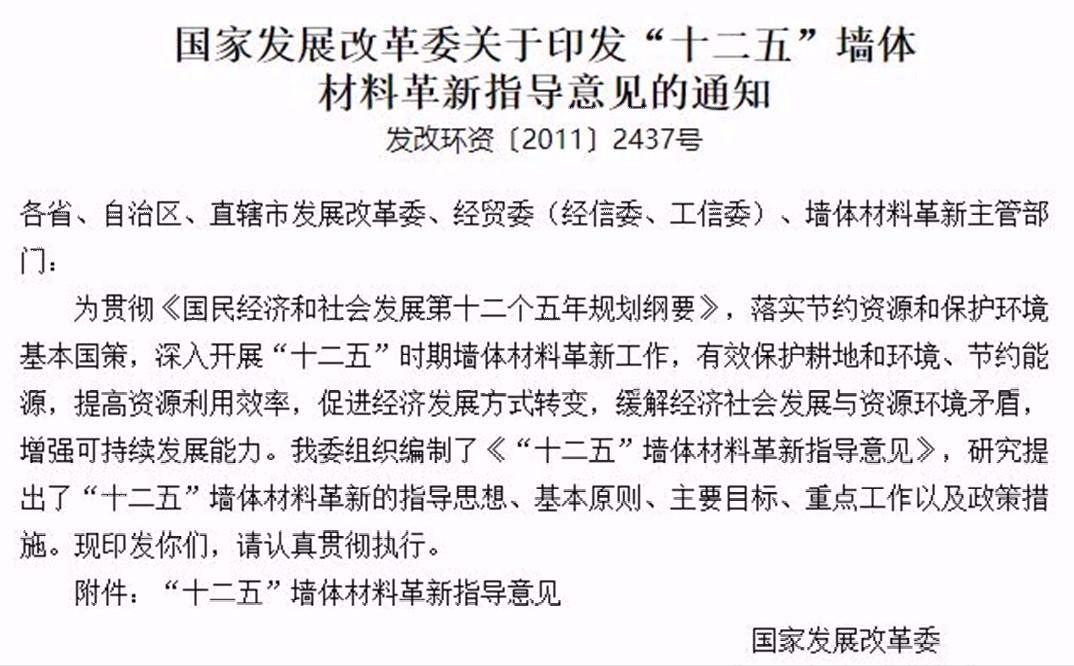 2011年,国家发改委明确提出禁用红砖,并直接指出其危害。具体见《“十二五”墙体材料革新指导意见》,要求“城市限粘(限制使用粘土制品的墙体材料),县城禁实(禁止使用实心粘土砖)”。
