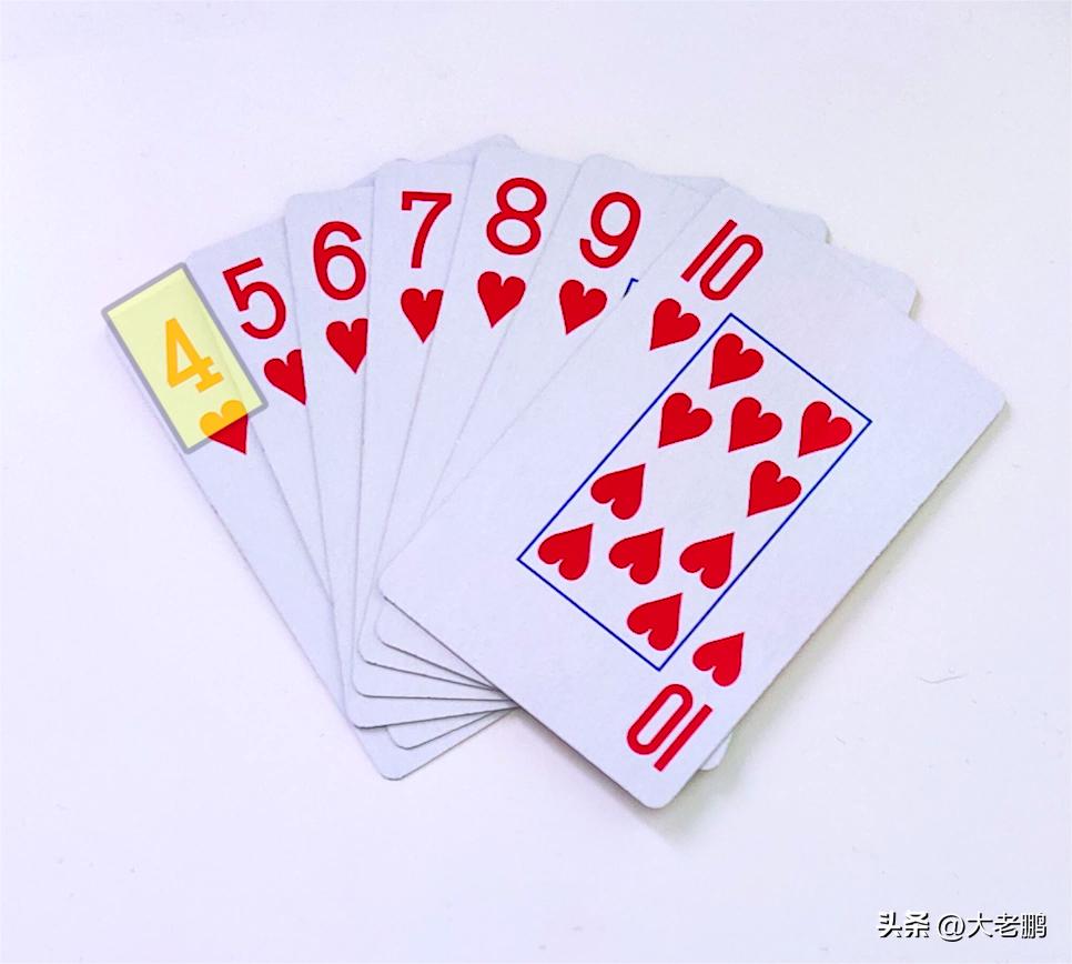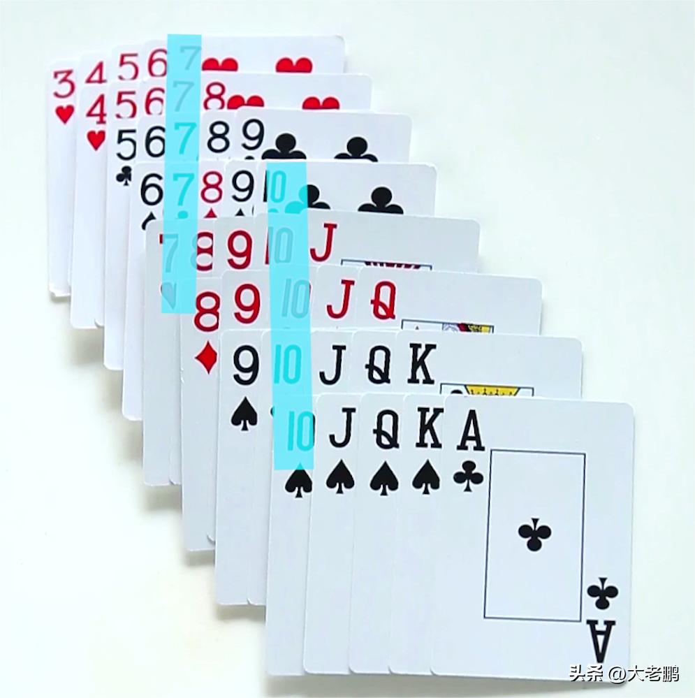比如:把5张的顺子全部摆出来才发现,小顺子都带7,大顺子都带10。在打牌过程中,如果7和10都出完了,自己就算有个34567,也大了!所以,手里顺子多的时候,要注意记关键牌7和10!自己有炸7或者炸10的时候,拆了做顺子也能拿牌权!