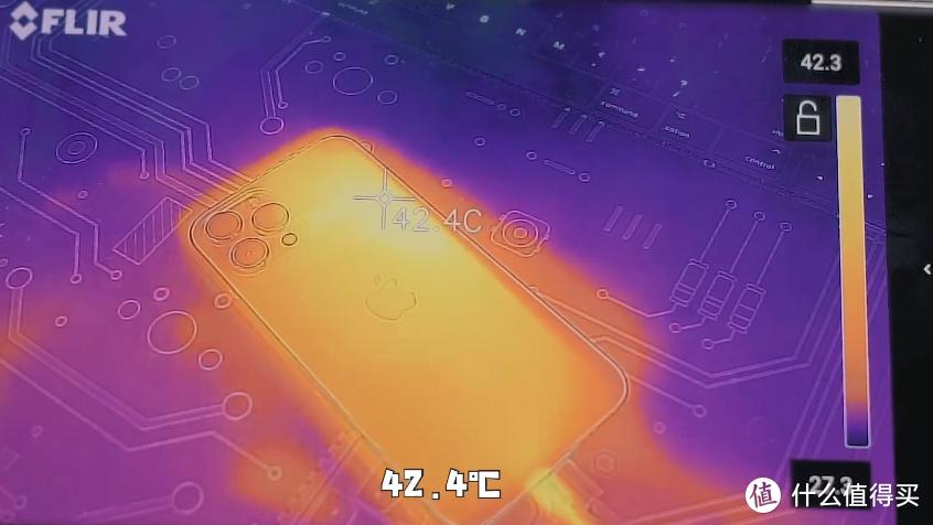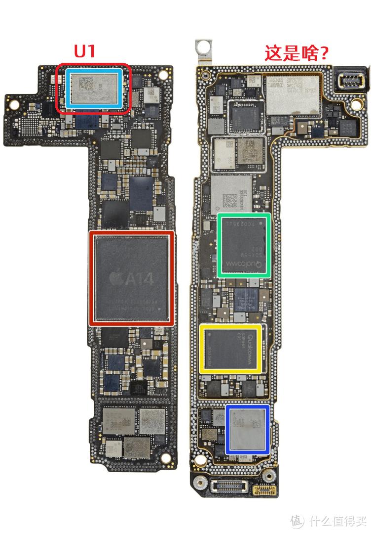 不过iPhone12的发热点在摄像头的右边,不应该是A14的位置最烫嘛,结果是红框处温度最高,反而好像是U1芯片的地方最热?