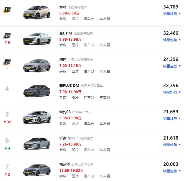 比亚迪秦L DMI才上市两个月,上个月就卖出32,466辆,销量成绩超过大众帕萨特、秦plus dmi、日产轩逸、大众帕萨特、销量成绩非常火爆!下半年的爆发力应该是非常强,而且两个多月,累计销量已经突破5万台,快赶上亚迪海豹DMi。