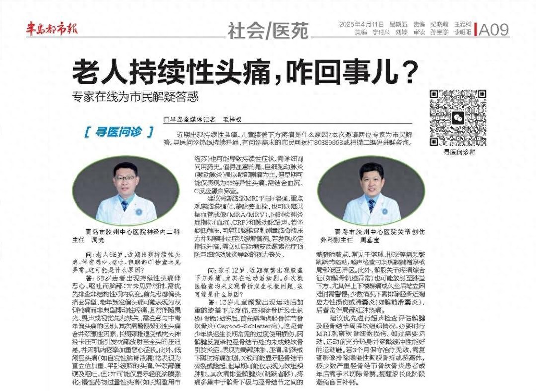寻医问诊 | 老人出现持续性头痛是何原因?专家在线为市民解疑答惑