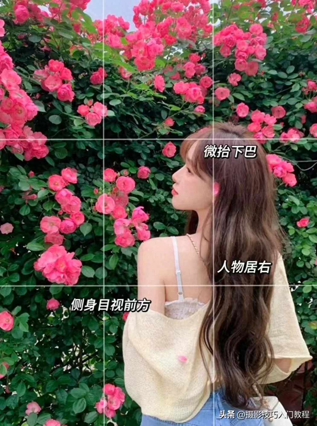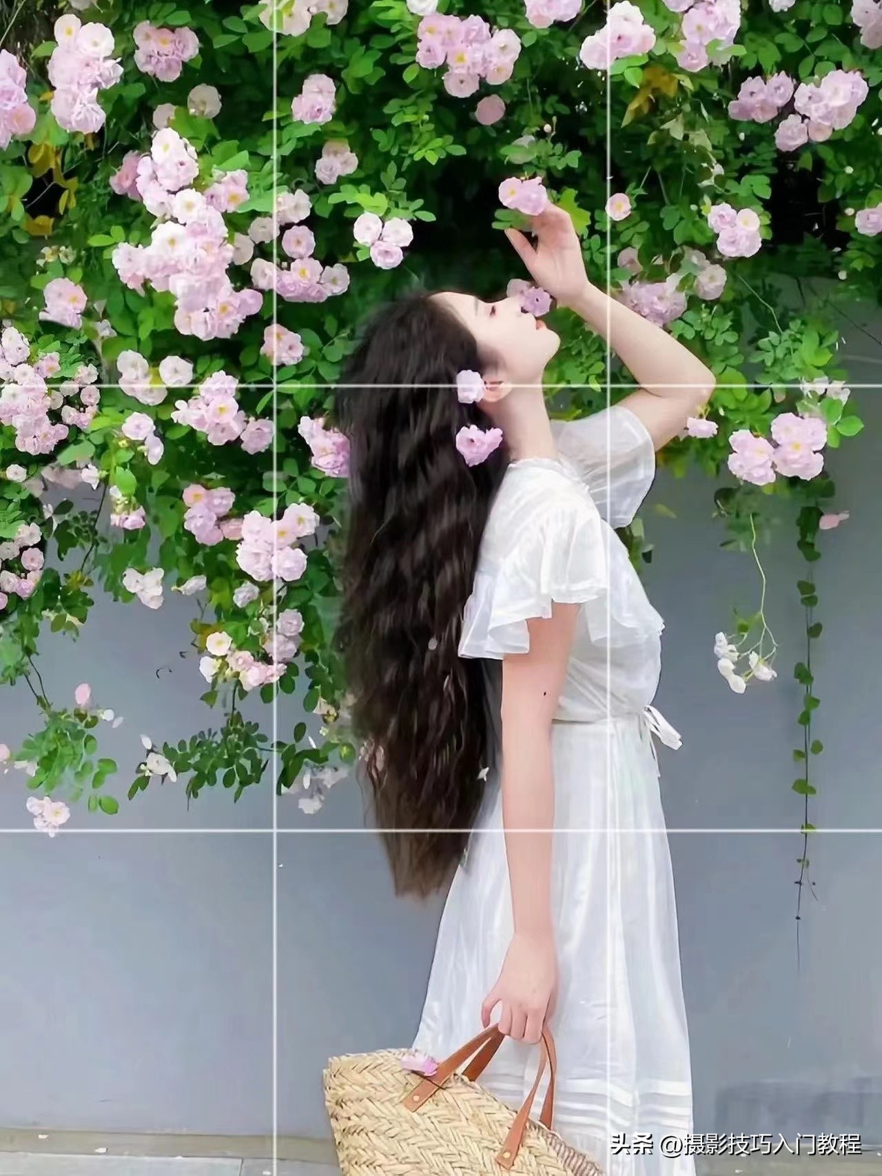 不会构图的朋友,可以提前将网格线开启,直接套用拍照博主的构图。