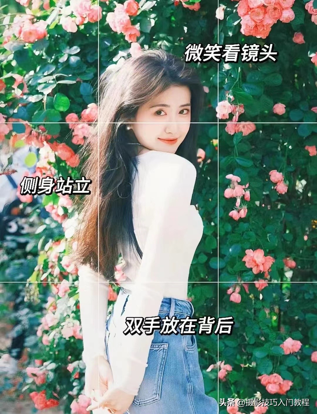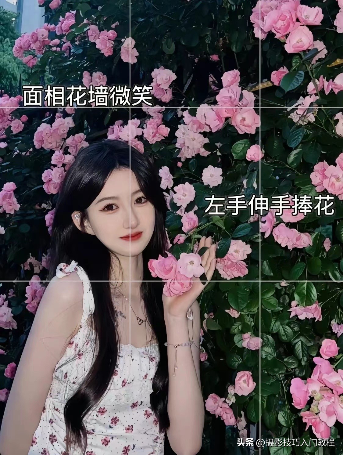 春夏期间,正是繁花茂盛的季节,如果你也在路边遇到这样的花墙,可以参考上面的拍照姿势来拍一组人像大片。