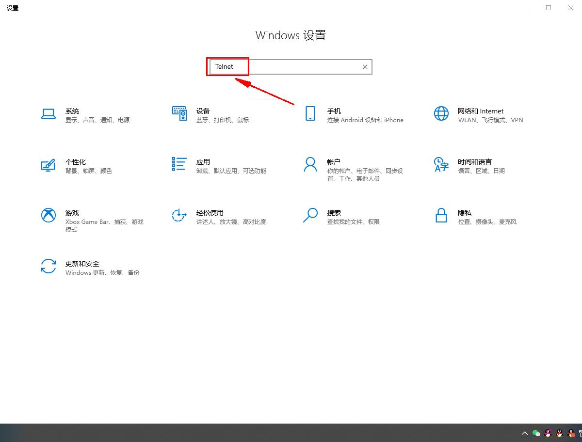 - 在搜索上方输入telnet,如下图所示会显示,启用或关闭Windows功能,点击进去
