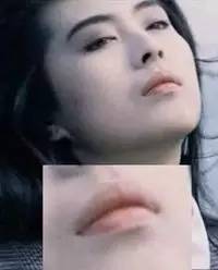 王祖贤和angelbaby的嘴唇都有轻度凸出,所以每次细看她俩的嘴唇,都能看到一圈白边,那就是遮瑕膏的勾勒。