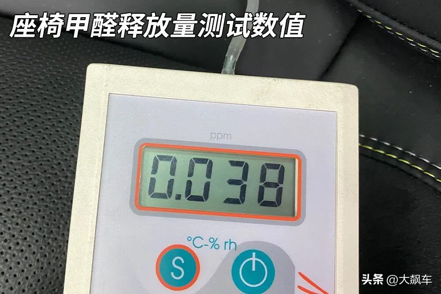 座椅的甲醛释放量测量数值为0.038毫克每立方米,顶棚中的甲醛释放量测量数值为0.031毫克每立方米。