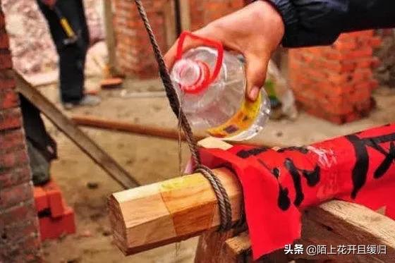 为了达到“雨浇梁”的吉兆,上梁当日如果没有下雨,有些地方还会特意举行“浇梁”的仪式,或用净水,或用白酒,象征性地浇在大梁上,寓意风调雨顺。还有些地方还会在水里放上许多硬币,以此浇梁,寓意财源滚滚。