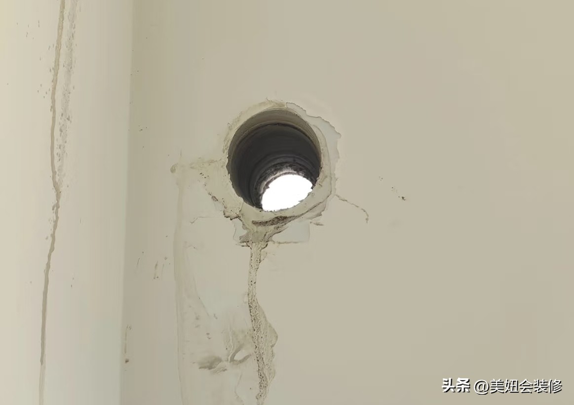 2. 藏铜管套路:把孔打在内机背后,确实看起来美观一些,但是万一后期出现漏氟的情况,要维修的话,那就得拆吊顶了,这可就太折腾了,所以打孔位置也要慎重考虑。