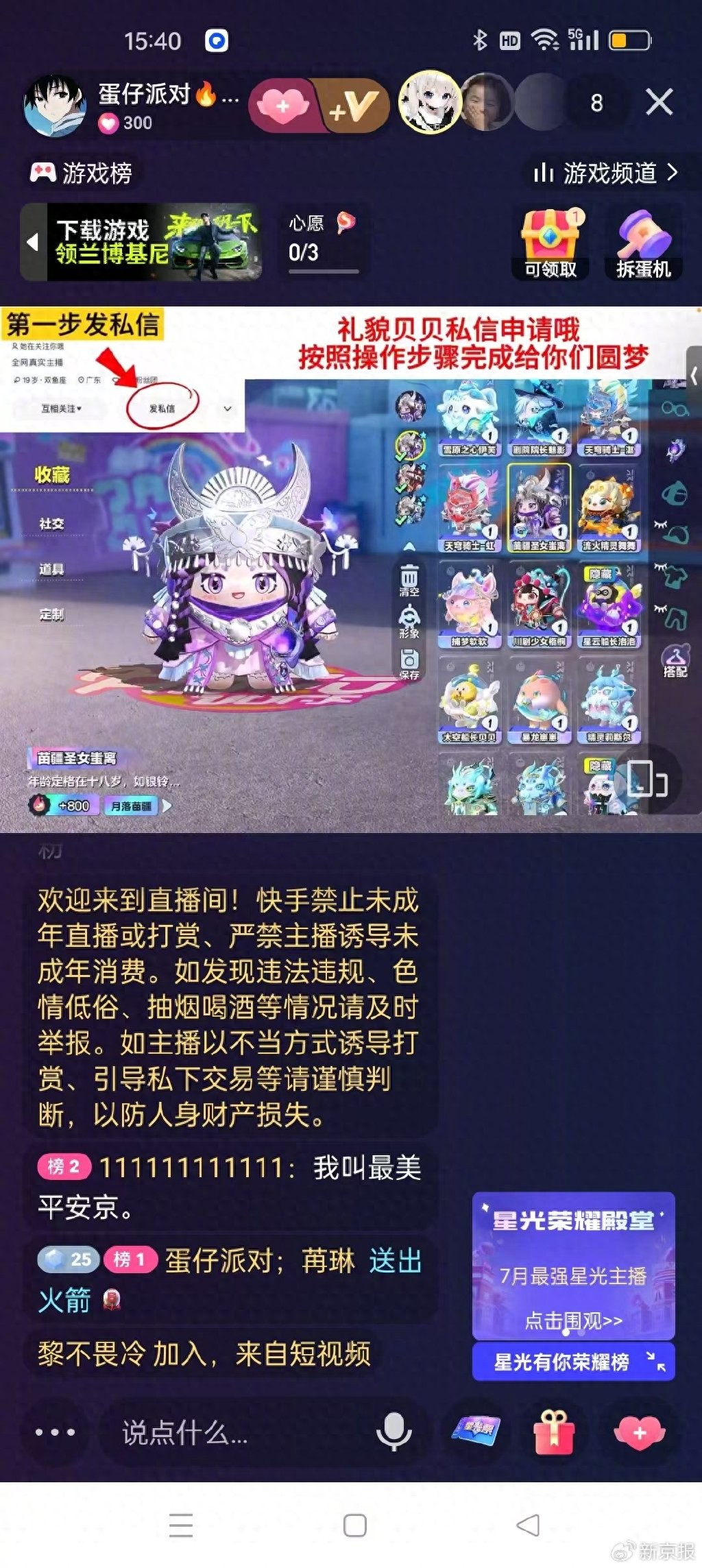 记者发现,截至发稿前,“小花姑娘”等账号仍在直播。依旧有许多账号被陆续邀请上麦,一旦被邀请上麦,私信里就会冒出要求“配合解除风险”的人。而在社交平台,也有“免费领取蛋仔派对皮肤”的内容存在,但是真假未辨。