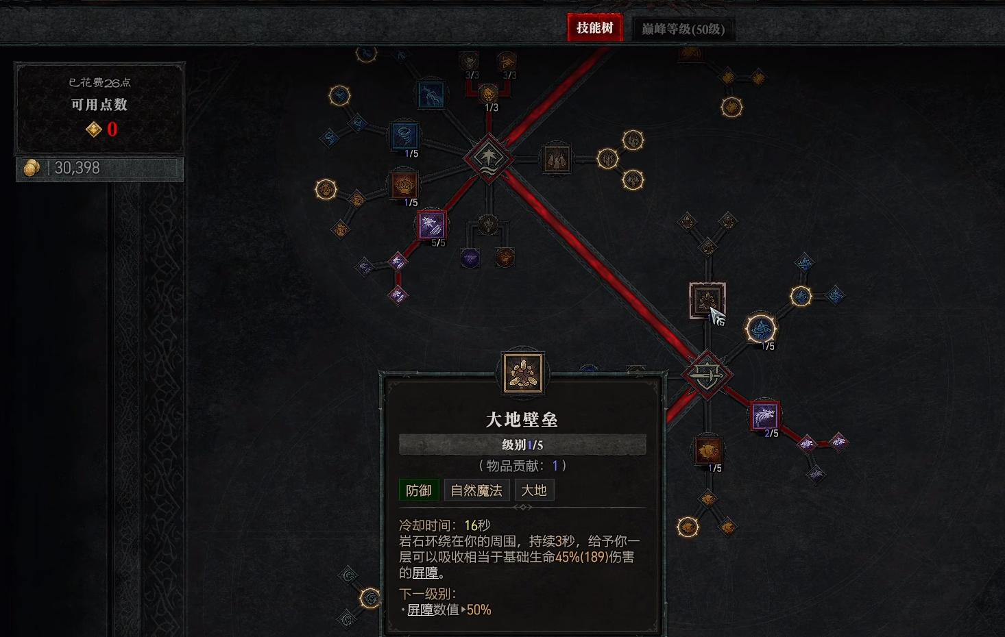 3、大地壁垒(加1点),作为防御技能,给自己套一个魔法防御护盾。