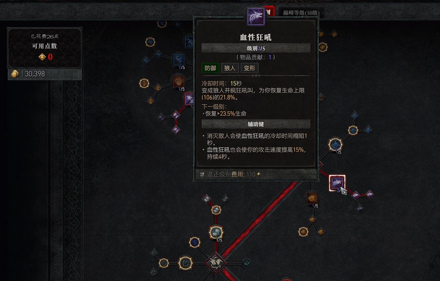4、血性狂吼(加1点),作为生存类技能,能够恢复大量生命值。