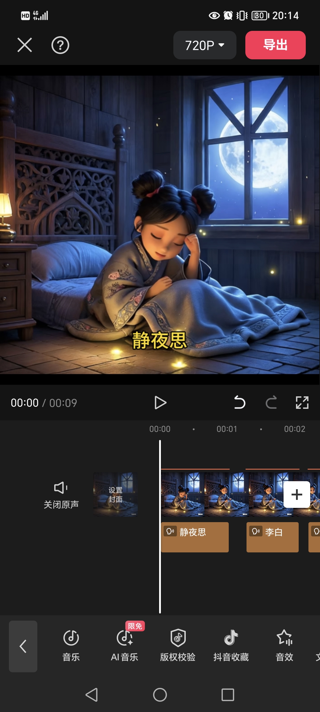 7.生成古诗词朗读语音和文字字幕