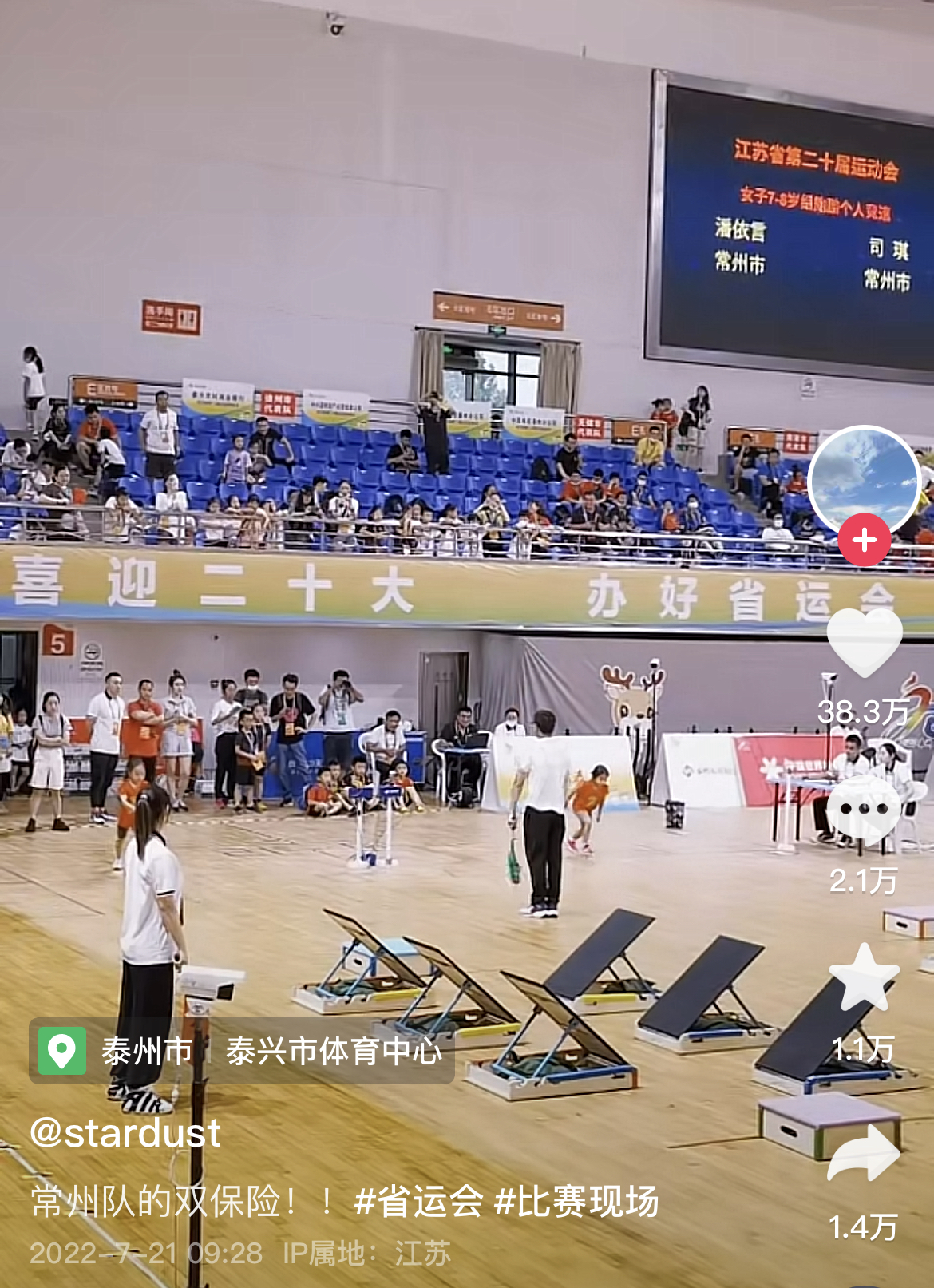 7月21日,抖音用户“stardust”上传了这段22秒的比赛视频,两名代表常州出战、身着红色队服的小女孩一出发,就开始了“风一般”的征程。
