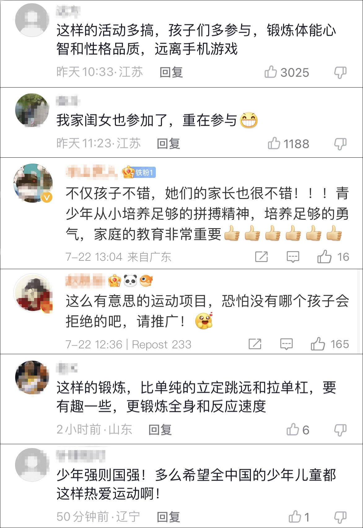 还有人建议称,现在的青少年需要这样形式新颖、趣味性强、锻炼效果好的运动项目,希望这种锻炼孩子核心力量、反应速度,同时培养孩子拼搏精神的项目可以多多发展。