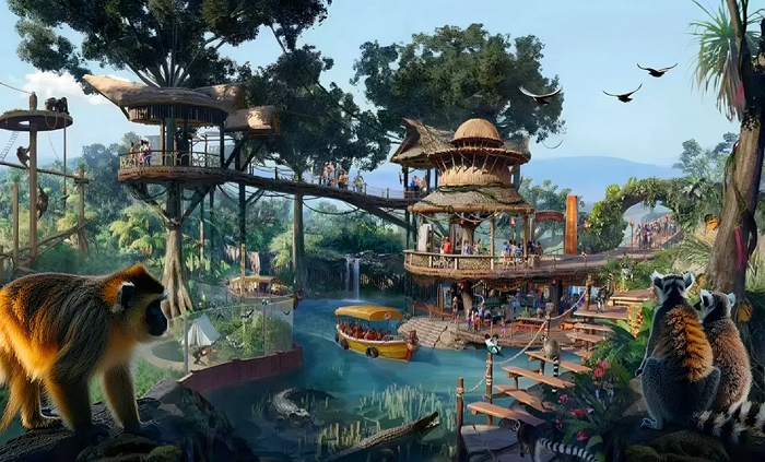 波塞冬三期动物王国项目,总占地面积约15万平方米,总建筑面积约4万平方米,主要以陆地动物展演及人与动物欢乐友好互动为主题,规划了猛兽区、雨林探险区、非洲草原区、灵长动物等六大特色动物展示和互动区,室外猛兽表演剧场、水上飞禽表演剧场、室外动物百老汇演艺剧场等五大动物表演剧场及完善的旅游配套服务设施。项目荟萃长颈鹿、大象、河马、棕熊、山魈、非洲狮等80多种珍稀动物,通过大量精心造景,动物原生态展示,完美复现动物奇美自然生活场景,为游赏带来回归真实自然的良好沉浸式体验;项目还创新车行、船行多种游赏方式,增强了游赏体验的丰富性、层次感和趣味度;项目倾力打造的各种丰富多彩的动物主题演出,通过科技赋能,集观赏性和参与性、欢乐性和趣味性、奇幻性和真实性为一体,极大提升了游客与动物真实、友好、欢乐互处的美好体验。