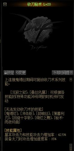 •增加基本攻击力和转职技能攻击力,每级成长率2%;装备太刀时,减少除[鬼缚钉]、[白牙落斩]、觉醒技能之外的技能冷却时间。