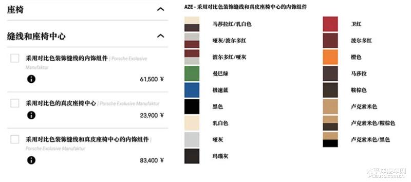最受大家喜爱的则是波尔多红内饰,最能展现保时捷的运动激情,而且既年轻又个性,黑色和波尔多红双色调光面真皮内饰价格为66000元。