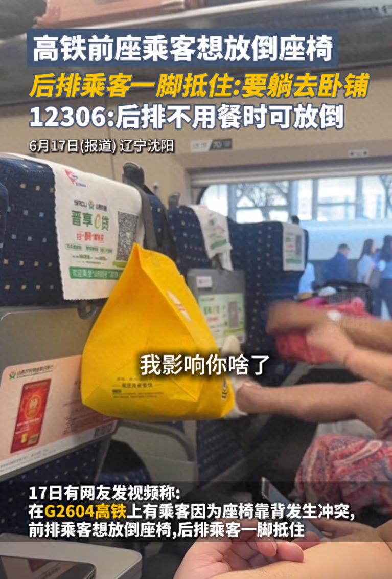 高铁乘客想放倒座椅遭后排一脚抵住,12306:后排不用餐时可放倒