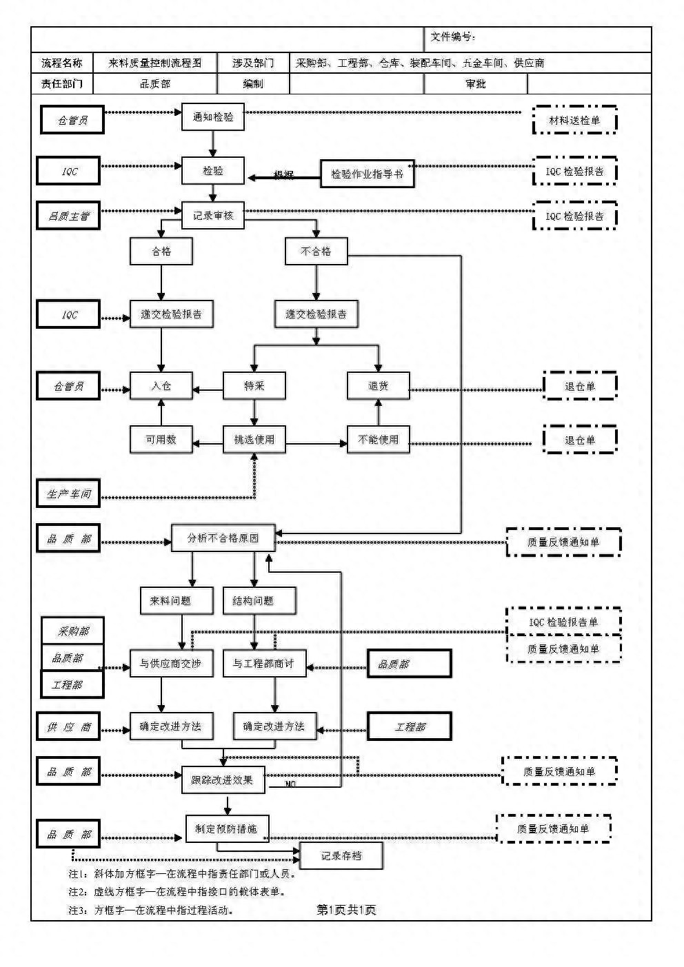 - 合格物料入库,不合格物料退回供应商或进一步处理。